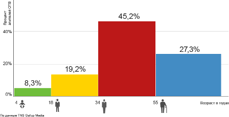 социально активные люди, интересующиеся происходящим в России и в Челябинской области. Это - представители интеллигенции, бизнесмены, служащие, жители областных краев. На рисунке аудитория канала в процентах.
